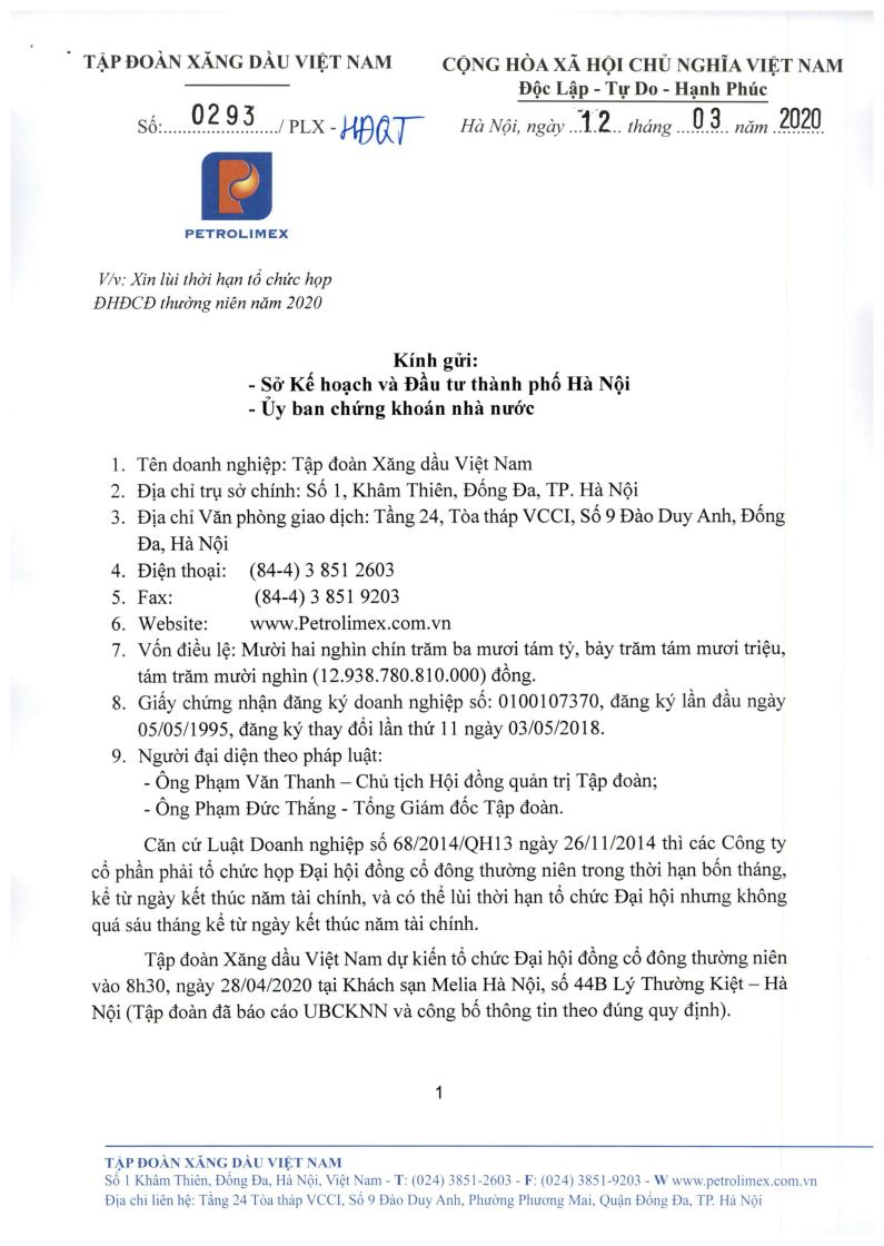 Báo cáo gia hạn tổ chức ĐHĐCĐ thường niên 2020